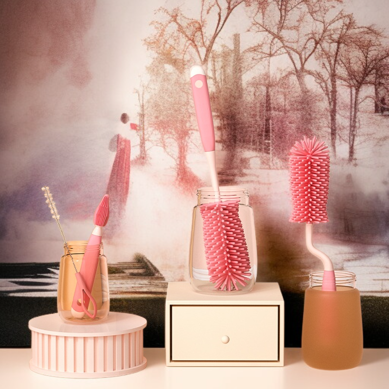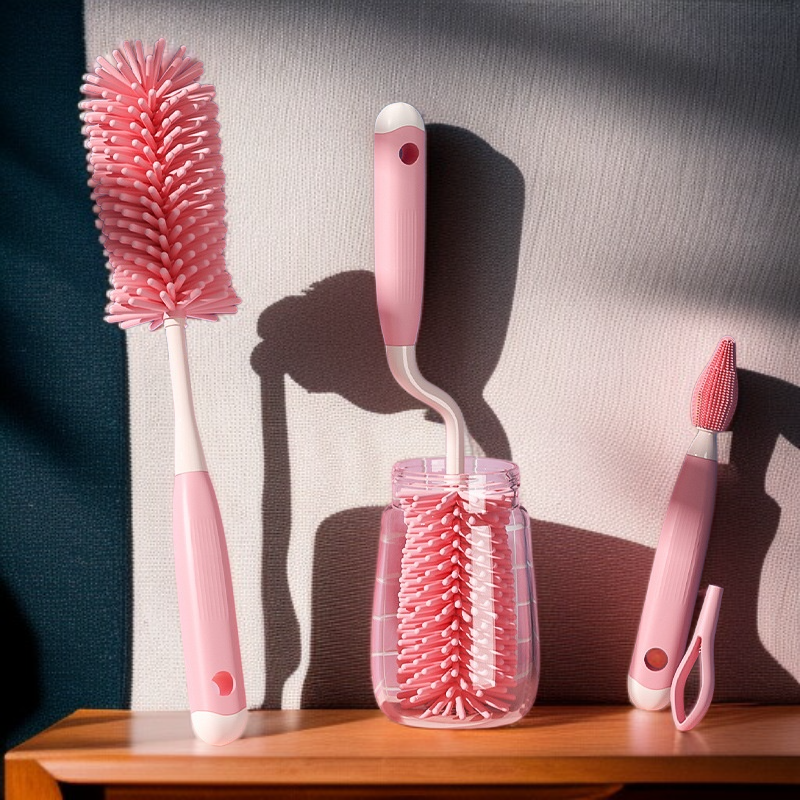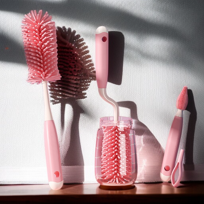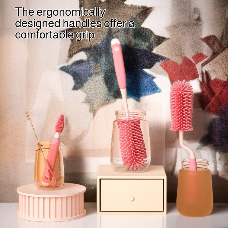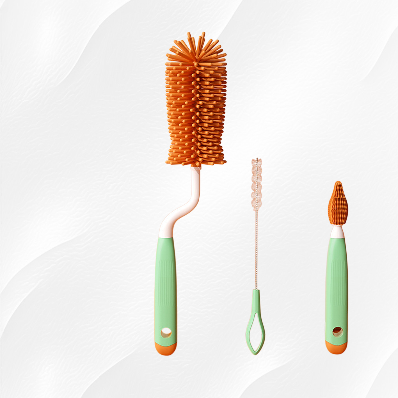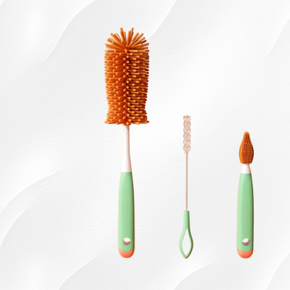 ● The three-piece set includes different brush shapes for versatile cleaning, perfect for mugs, bottles, and glassware of various sizes and shapes.